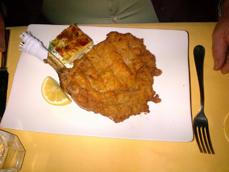 A very good veal chop "milanese". Crunchy breading with a juicy, tender veal interior.